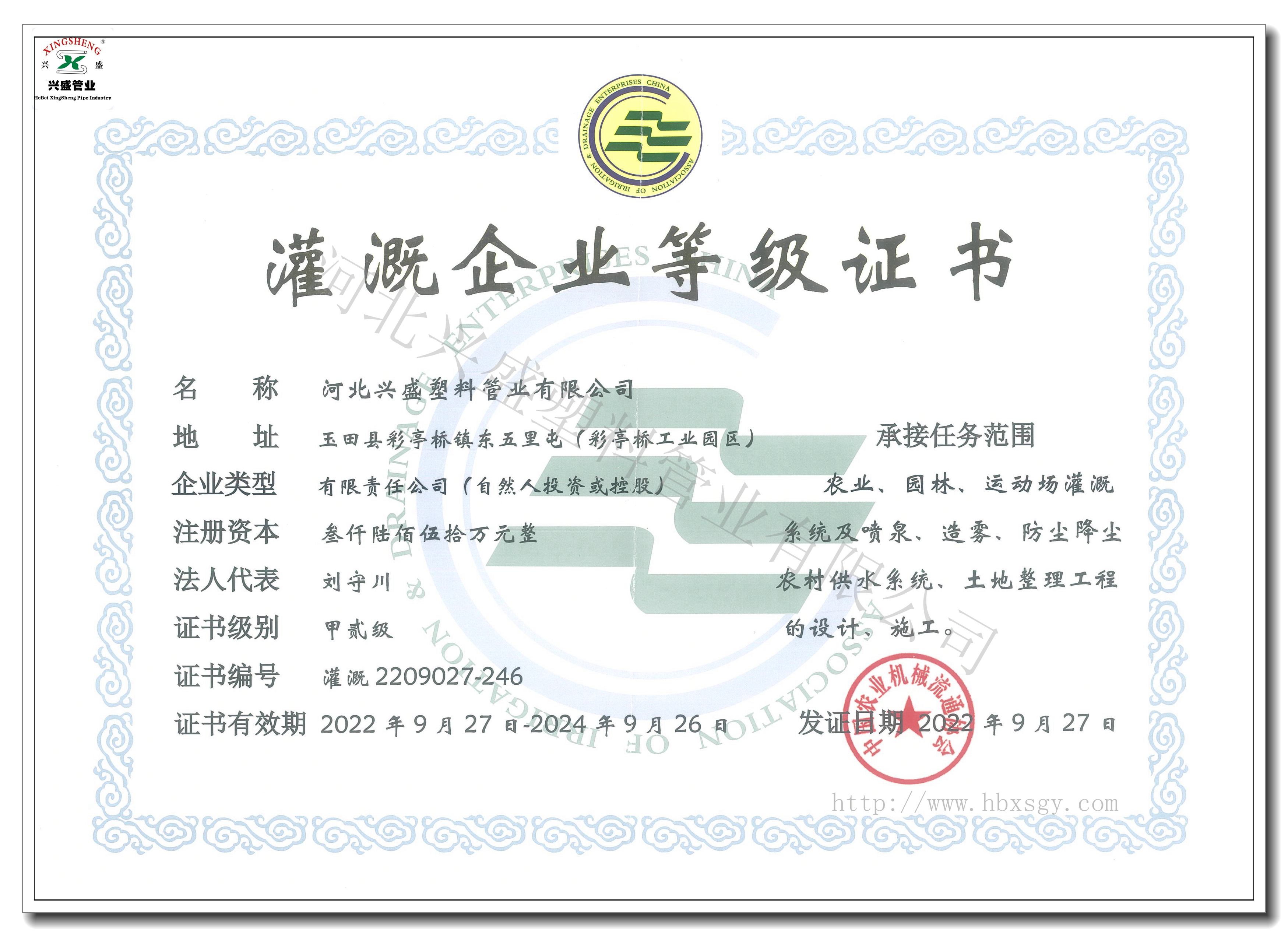 河北興盛塑料管業有限公司,始建于1981年,至今已有四十多年的發展歷程,致力于人畜飲水、節水灌溉等管道系列產品的研發、生產、銷售、設計安裝于一體的綜合型現代化企業.....